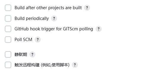 - Build after other projects are built : 设置上游依赖, 一些项目会有练习, 比如B依赖于A, 那么B就可以在这里配置A, 那么A构建完, B也会自动构建.