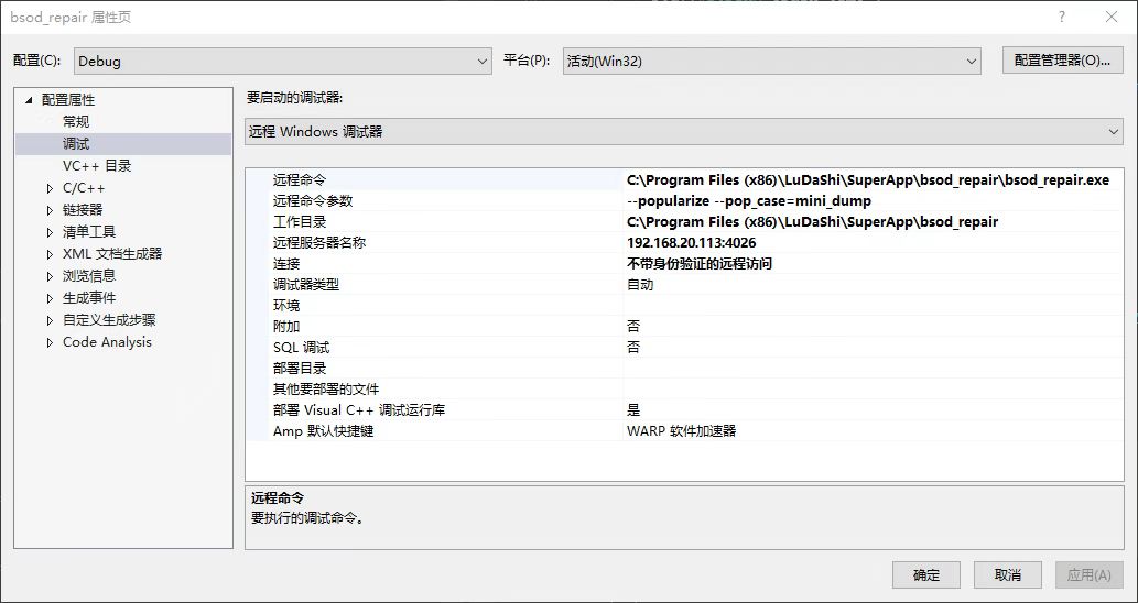 本地Windows调试器切换为远程Windows调试器.打开要调试的项目的属性, 设置远程命令/远程命令参数(如果有的话)/工作目录/远程服务器名称/连接 :