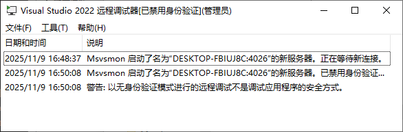 msvsmon.exe, 以管理员身份运行, 点击工具->选项, 身份验证设置为无, 允许任何用户进行调试.